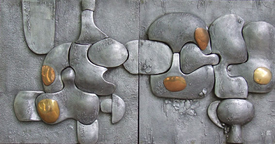 "Sonhek" ("Sungate"), 1980 - bronze (lost wax method) - 2 panels each 75x79 cm